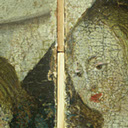 Festigung der Farbschicht unerlässlich. Aufstehende Schollenränder (Schüsselbildung) der craquelierten Malschicht werden niedergelegt.