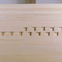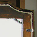 Rückseitenschutz als Klimapuffer. Mit Balsaholz wird die Verwölbung des Holzträgers aufgenommen und aufgeleimte Klötzchen ausgespart bis rückseitig eine Ebene erreicht ist.