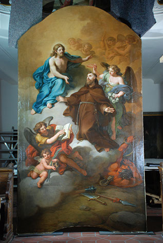 Das Leinwandgemälde aus der Mitte des 18. Jahrhunderts aus der kath. Spitalkirche in Wangen wurde vor Ort im Team konserviert und restauriert.