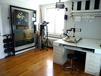 Atelier in Walddorfhäslach/Kreis Reutlingen: Restaurierungen u.a. für das Heimatmuseum und die Städtische Galerie/Spendhaus Reutlingen, Kreissparkasse und Landkreis Reutlingen.